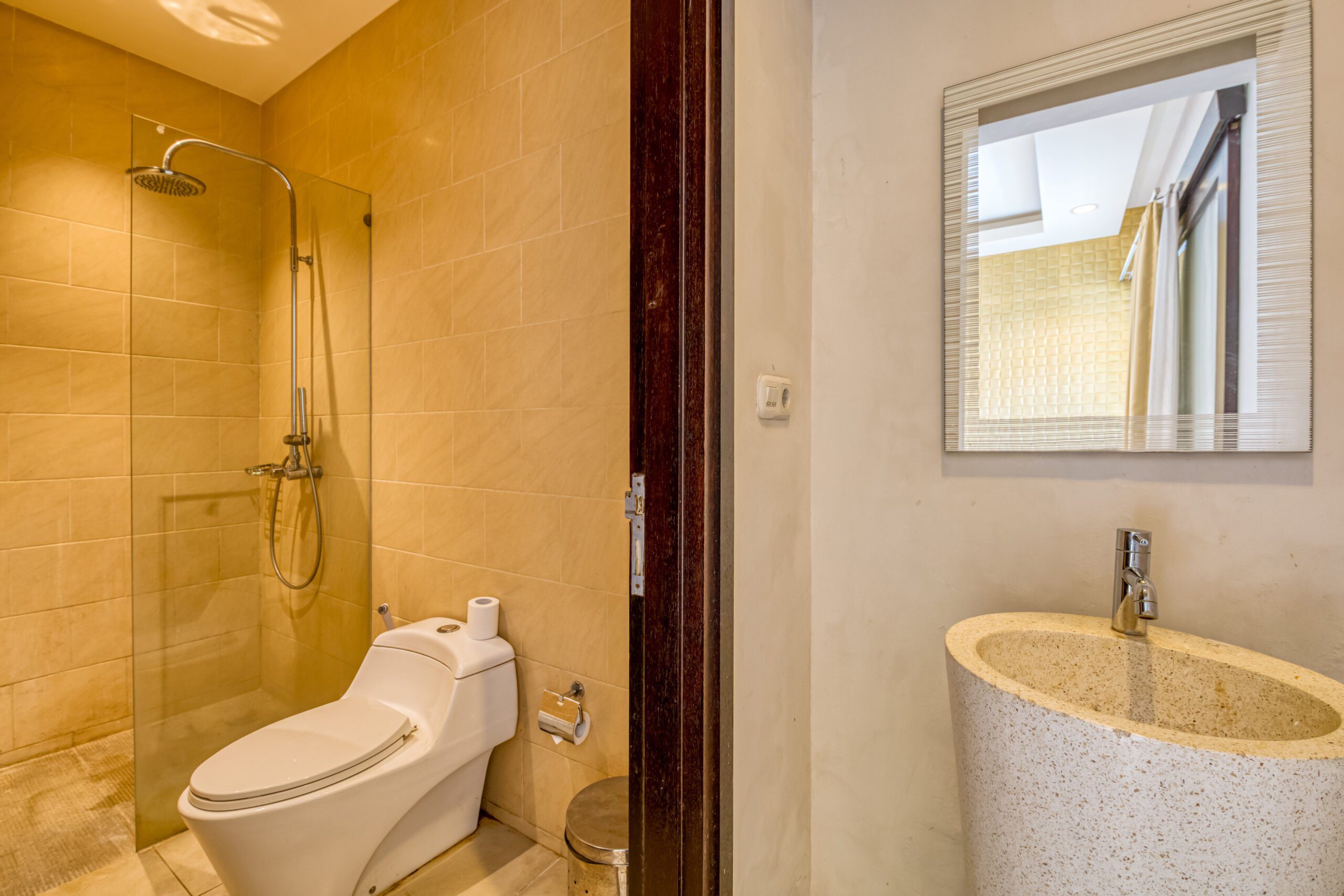 Welcome to Vila Emas, hosted by Manta Villas, located in the heart of Seminyak! Its central location makes it the perfect start of your Bali trip! It’s closely located to great bars, restaurants, Bali’s finest beach clubs and beautiful spa’s to relax at. Everything is within arms reach! Start your day with a dip in your private pool and enjoy your coffee in the loungers. Would you like to stay and work remotely at the same time? We got your covered with a proper working desk and wifi connection!