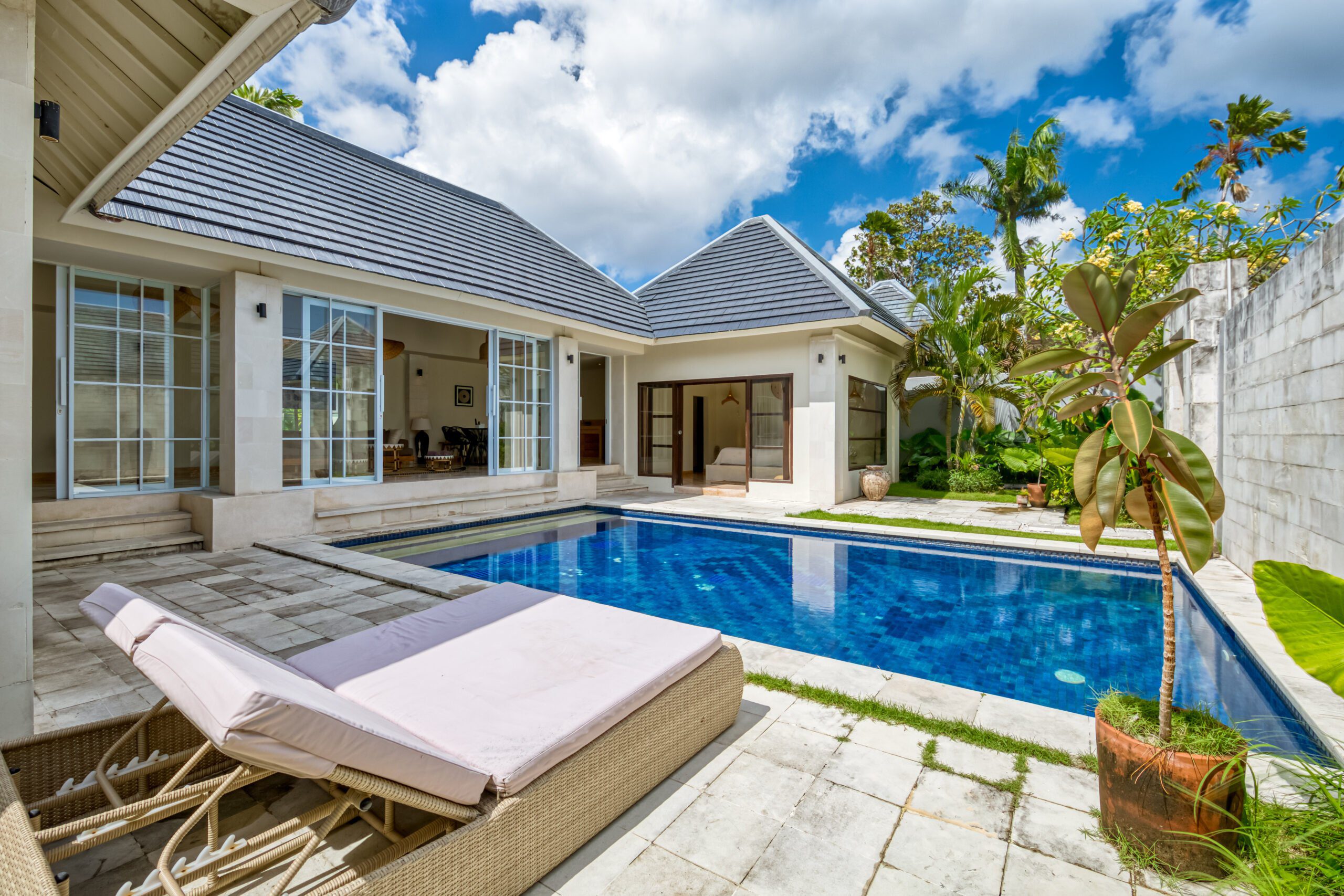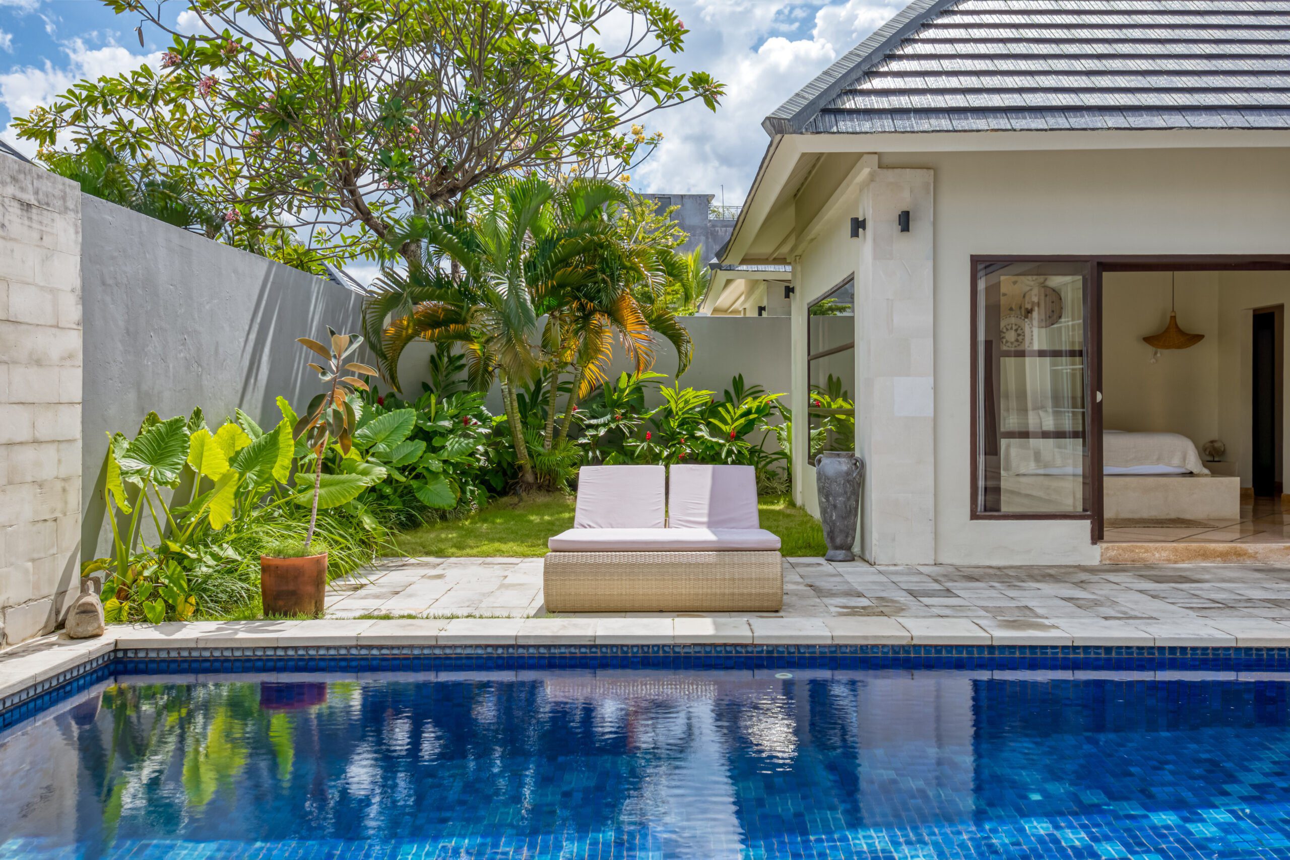 Welcome to Vila Kota, hosted by Manta Villas, right in the centre of Seminyak, Bali! From here you can reach your favorite food hotspots, boutique shops, trending beach clubs, Seminyak nightlife and relaxing spas in no time. Start your day well in our luxurious 2-bedroom villa with a dip in the large private swimming pool, and then relax in the tropical garden or in the very spacious, modern living room. In short, the ideal place to enjoy your well-deserved holiday in Bali!